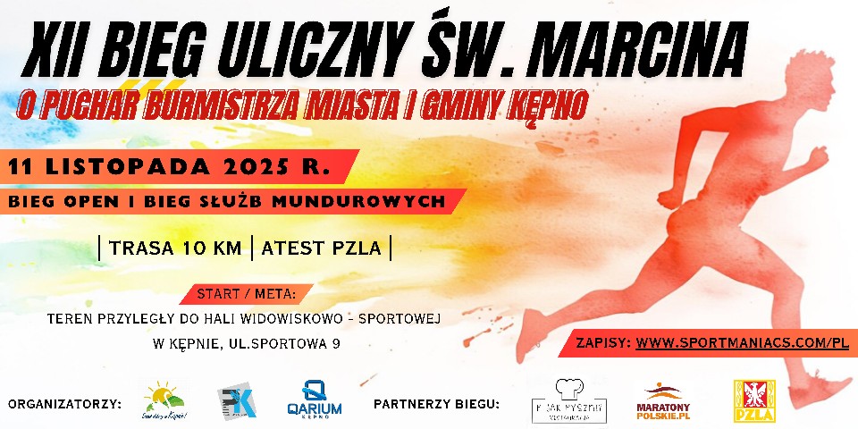 Classificacions XII BIEG ULICZNY ŚW. MARCINA O PUCHAR BURMISTRZA MIASTA I GMINY KĘPNO 11/11/2025 11:11 10.286km Veure classificacions BIEG SŁUŻB MUNDUROWYCH 11/11/2025 11:11 10.286km Veure classificacions Informació de contacte Contactar amb l'organitzador – 797766611 Reglament REGULAMIN