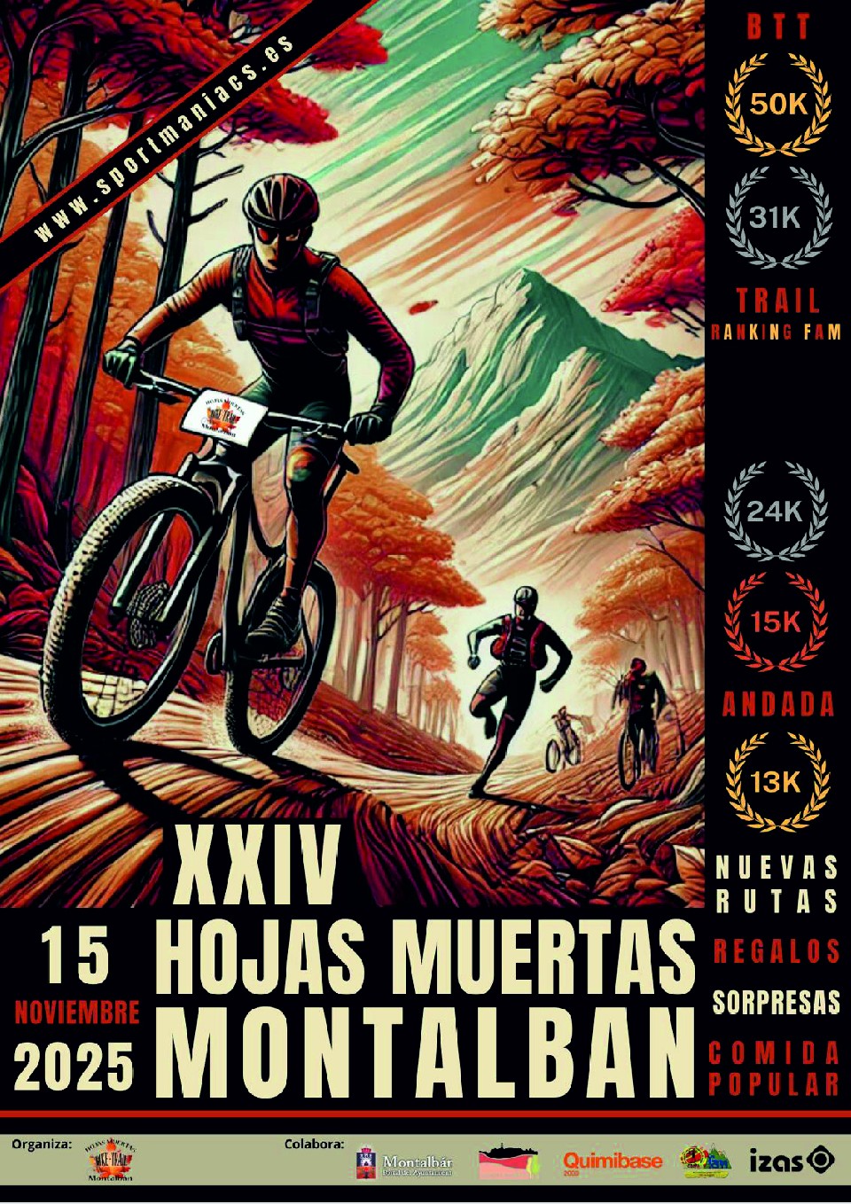 Ya son 24 años organizando la prueba Hojas Muertas Montalbán. La organiza el club Btt Montalbán Trail CD, colabora ayuntamiento de Montalbán, Comarca Cuencas Mineras y diversas empresas de la zona.