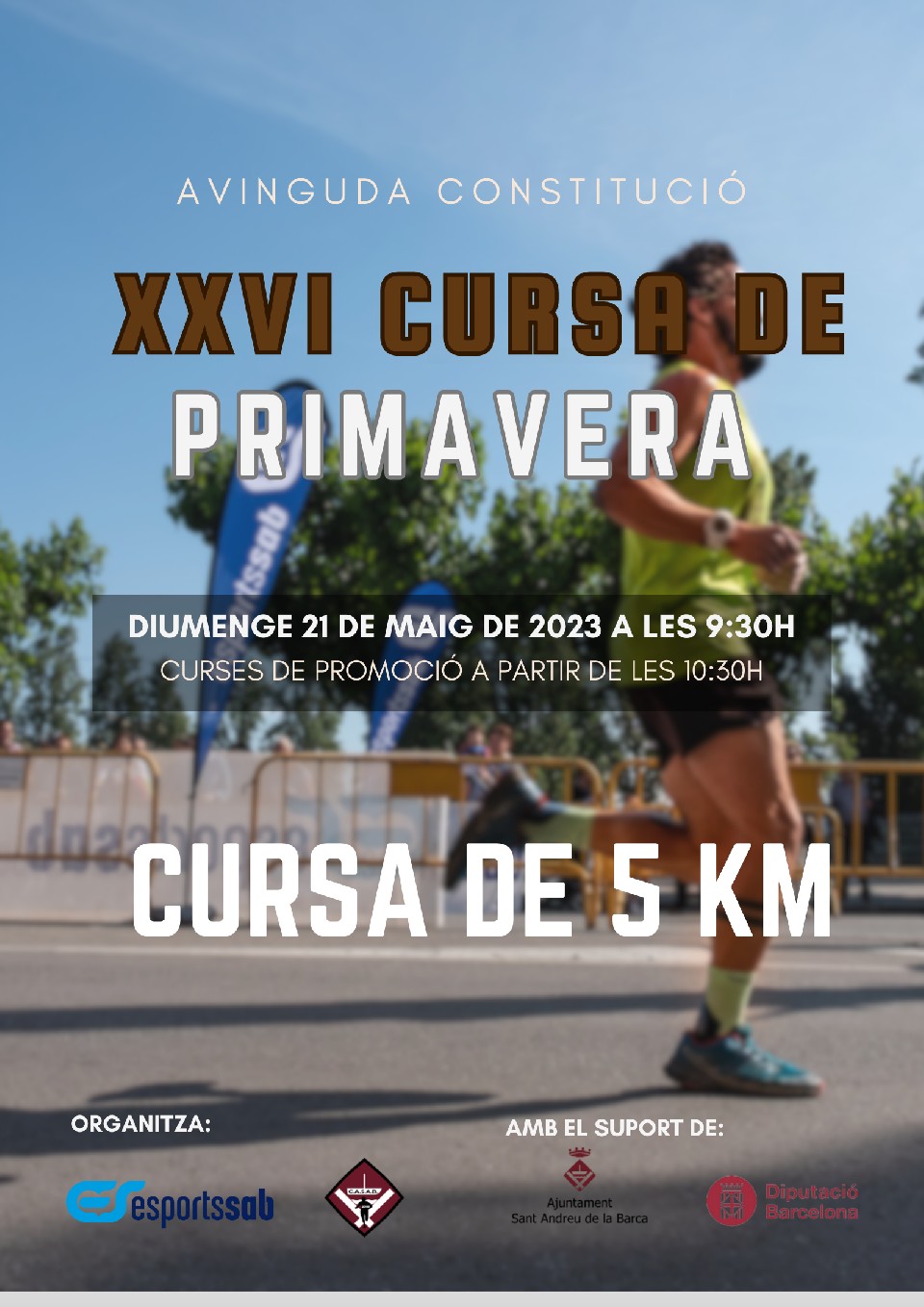 Esportssab, amb la col·laboració del Club Atletisme Sant Andreu de la Barca i amb el suport institucional de l’Ajuntament de Sant Andreu de la Barca, organitza el diumenge 21 de Maig de 2023, la XXVI Cursa Popular de Primavera, oberta a tothom que accepti i respecti tant la distància per recórrer com el present reglament.
