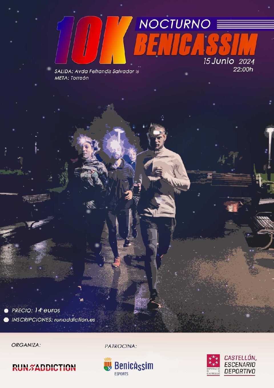 El C.A. RUN ADDICTION organiza la 11ª edición de la carrera popular denominada 10K Nocturno Benicássim Platges, con la colaboración del Ayuntamiento de Benicássim, la Concejalia de deportes de Benicássim y la Diputación Provincial de Castellón esta prueba atlética, a la que tiene acceso cualquier persona que lo desee, nacidas hasta 2006 (18 años cumplidos), dentro de las limitaciones para Carreras de Ámbito Autonómico.