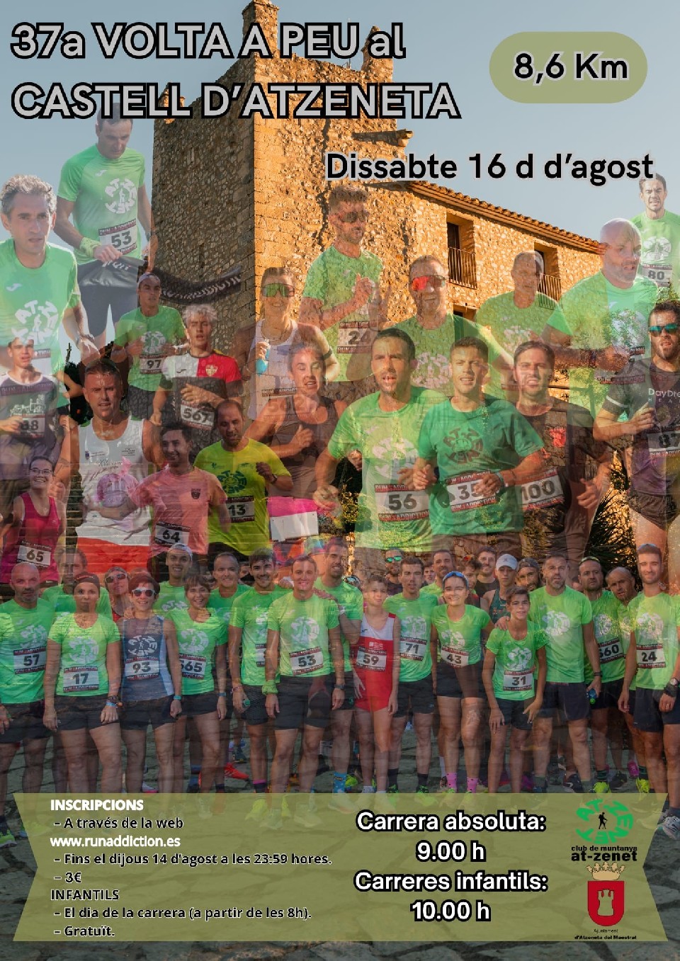 L’AJUNTAMENT D’ATZENETA organitza LA XXXVII VOLTA A PEU AL CASTELL D'ATZENETA, col·labora el Club de Muntanya AT-ZENET. La prova serà el dissabte 16 d’agost de 2025 a les 9:00, i el recorregut transcorre en la seua totalitat dins el terme municipal d’Atzeneta del Maestrat. Hi haurà un únic lloc d’avituallament a meitat recorregut. L'edat mínima per poder participar-hi és de 14 anys.