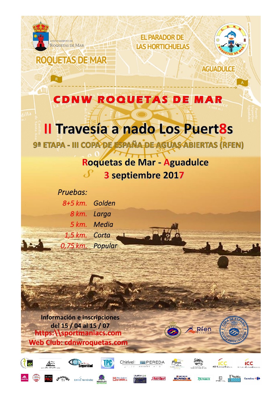 En la web del Club Deportivo Natación y Waterpolo Roquetas de Mar: cdnwroquetas.com, habrá un acceso directo a la web de la empresa de inscripciones y cronometraje para poder hacer la inscripción.