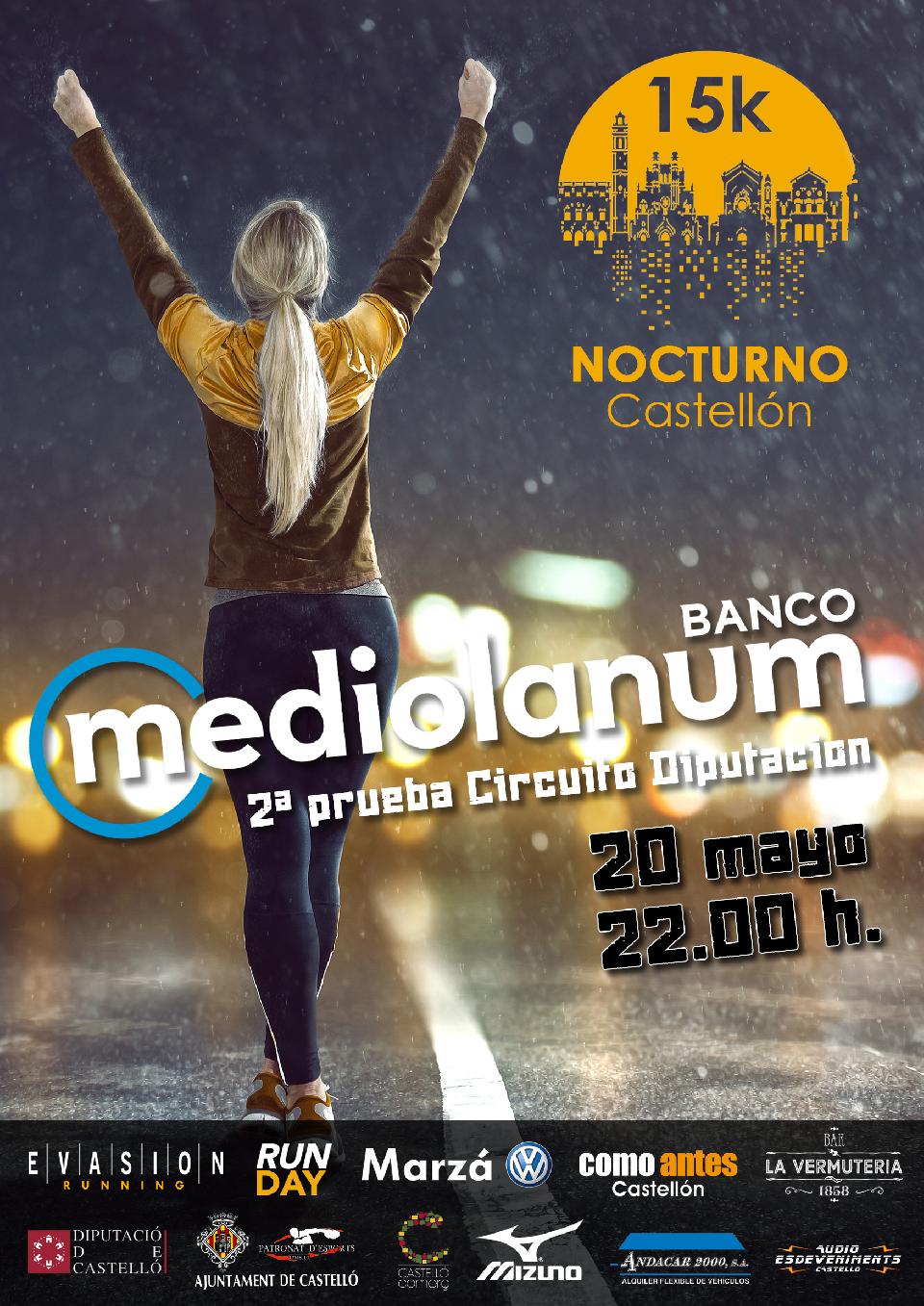 El Club Deportivo Team Evasion Running de Castellón organiza con el patrocinio de la Excma. Diputación Provincial de Castellón, el Patronat d’ Esports de Castelló, y el banco Mediolanum, con la colaboración de diferentes entidades privadas; los eventos 15 KM y 5Km NOCTURNO DE CASTELLÓN, pruebas atléticas en la que podrán participar todas las personas que lo deseen, debidamente inscritas, nacidas hasta 2002.