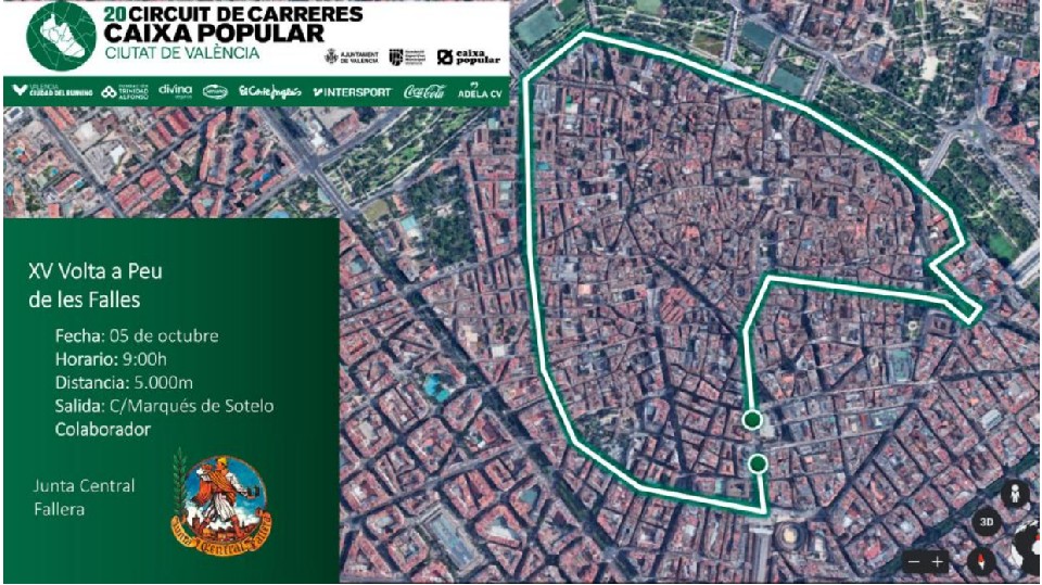 La Fundación Deportiva Municipal, con la colaboración de la Junta Central Fallera organiza la 15ª Volta a Peu de les Falles, octava y última prueba puntuable perteneciente al 20º Circuit de Carreres Caixa Popular Ciutat de València (en adelante Circuit), y cuenta con la colaboración principal de Caixa Popular y la colaboración de Fundación Trinidad Alfonso, Intersport, Cárnicas Serrano, Coca-Cola, El Corte Inglés y Divina Seguros.