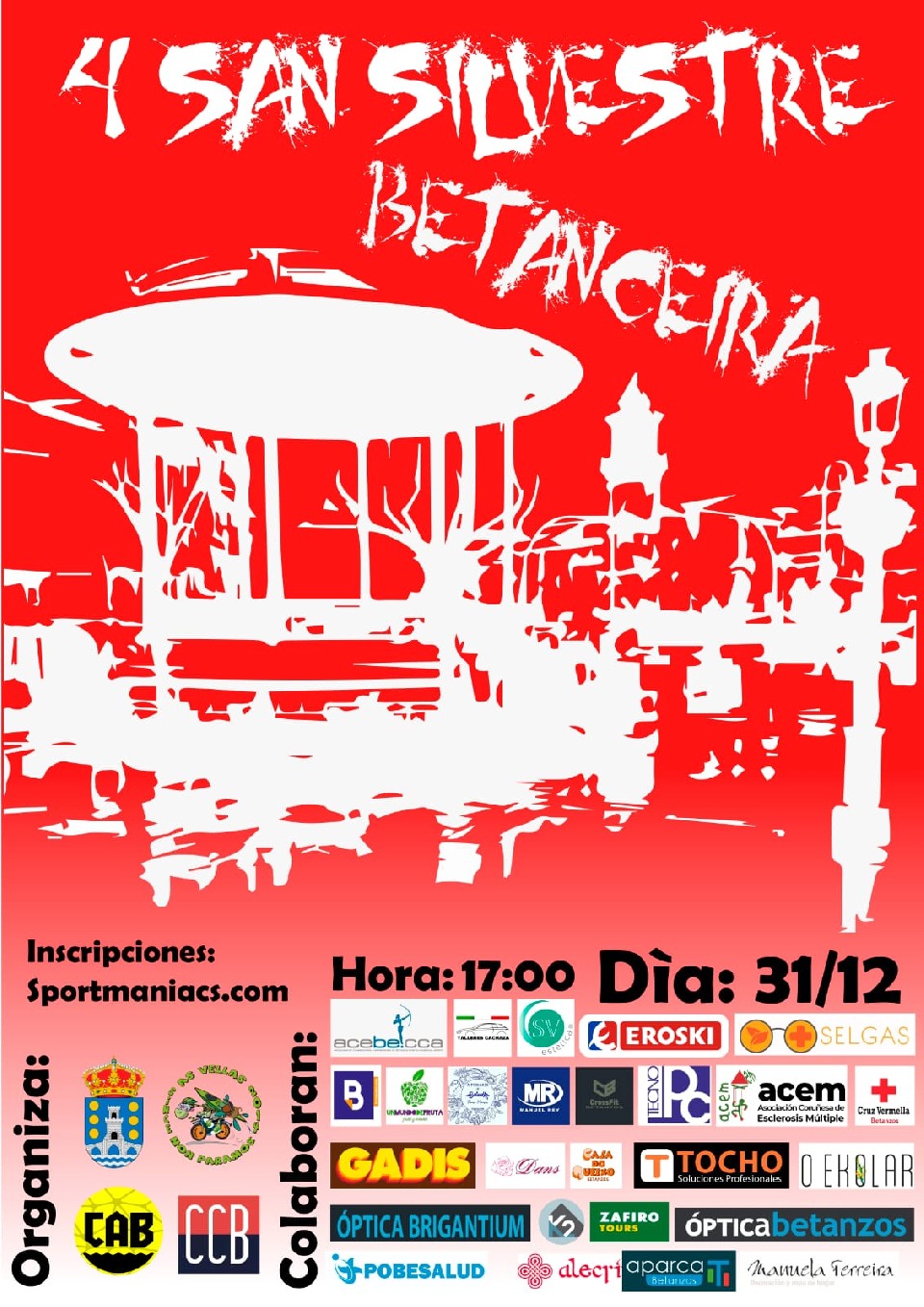 Organización: O Concello de Betanzos e o Club Atletismo Betanzos organizan a IV San Silvestre Betanceira. A proba terá lugar o vindeiro venres 31 de decembro, con saída e meta na Praza Irmans García Naveira e discorrerá pola contorna da vila.
