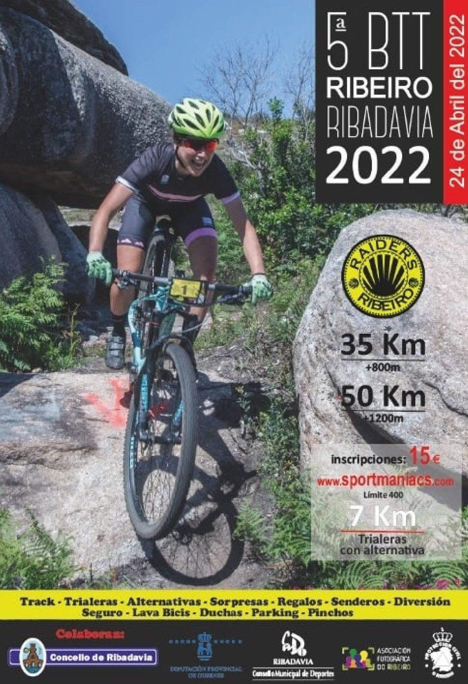 O Club Ciclista Raiders do Ribeiro organiza a 5ª Ruta Btt do Ribeiro en Ribadavia, marcha cicloturista de montaña NON COMPETITIVA, que se celebrará o dia 24 de Abril do 2022.