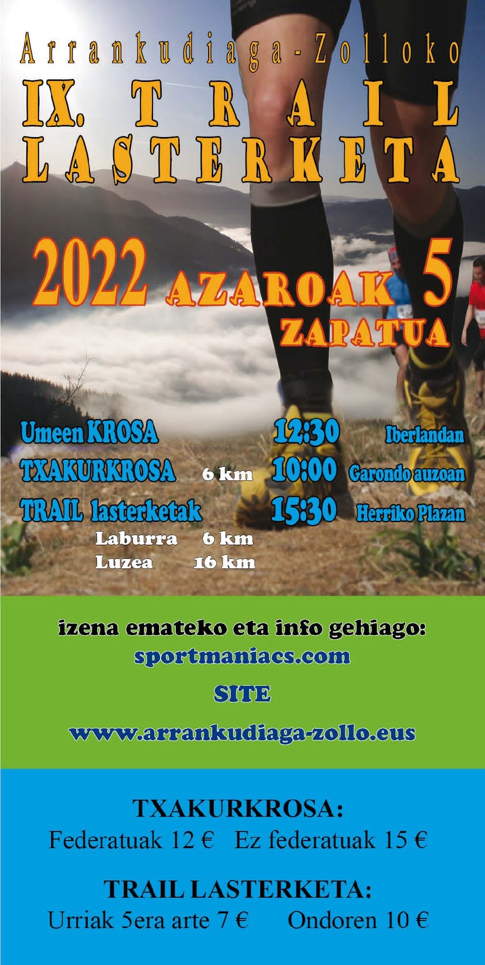 El ayuntamiento de Arrankudiaga-Zollo organiza la IX. edición de la ARRANKUDIAGA-ZOLLO TRAIL LASTERKETA que se celebrará el próximo 5 de noviembre de 2022.