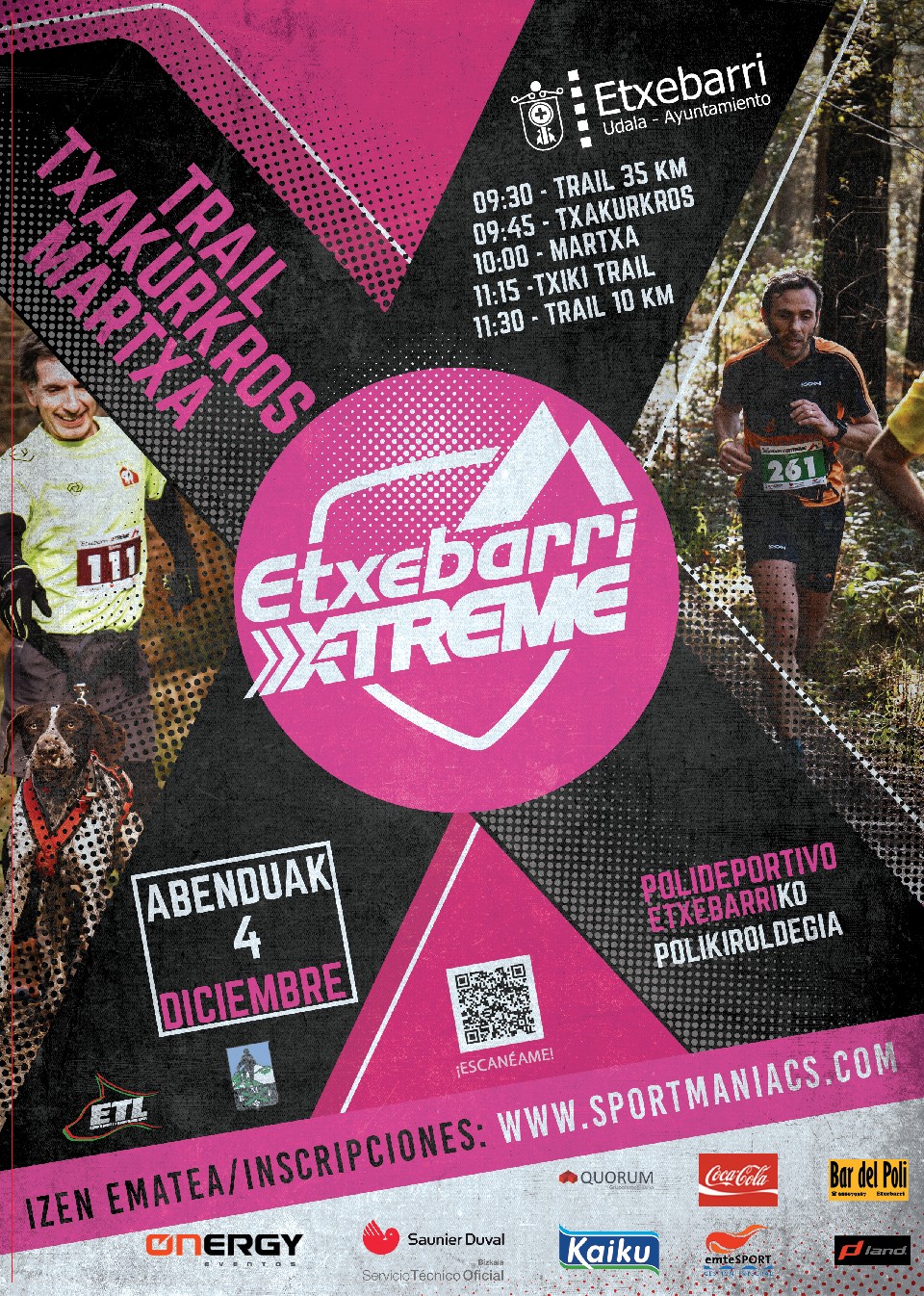 - La prueba se celebrará el día 04 de diciembre del 2022 en Etxebarri. Podrán participar todas las personas que lo deseen, sin distinción de edad o sexo, federadas o no, y se hayan inscrito en la carrera y porten su dorsal en la salida. Plazas limitadas a 250 atletas en Trail, 100 en canicross y 150 en Trail 35k