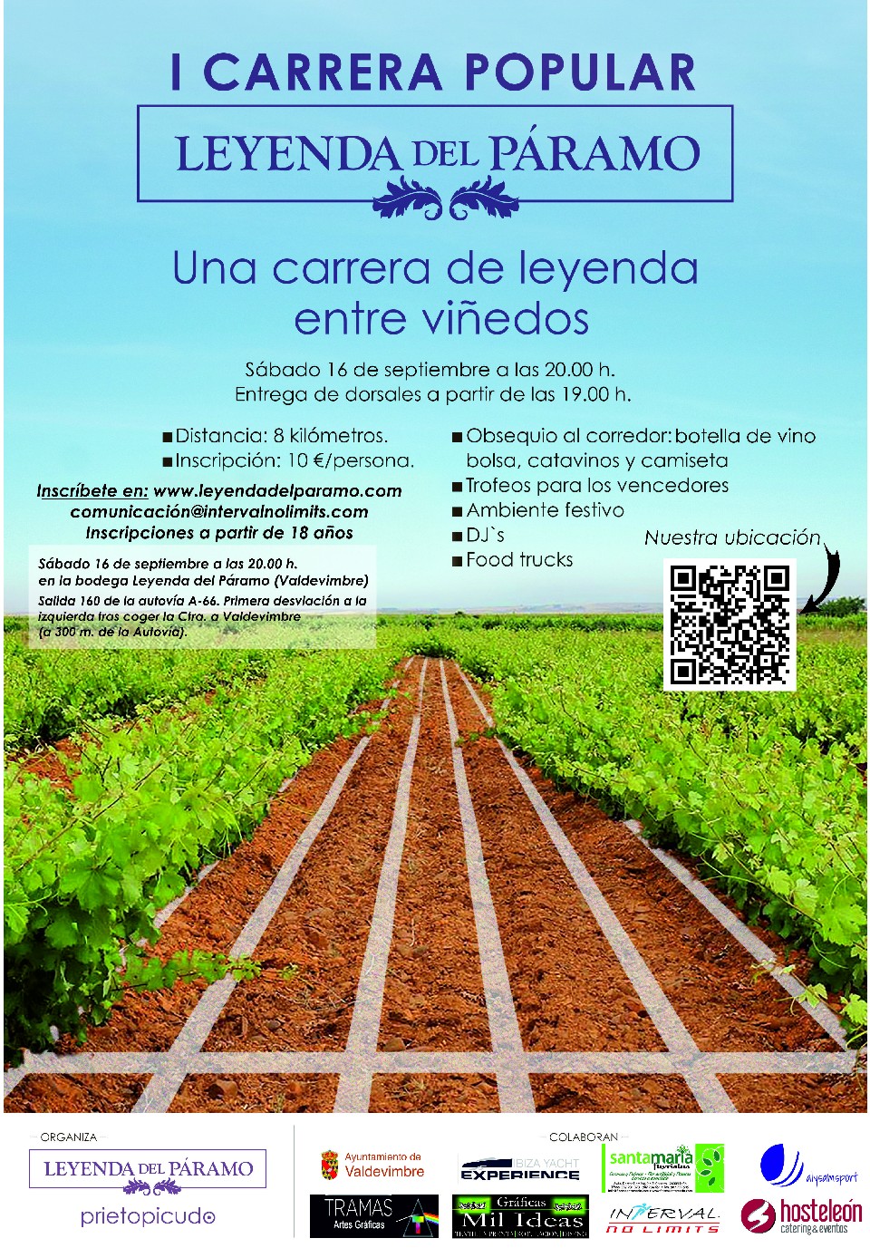 - Nombre: I Carrera Popular Leyenda del Paramo Día: 16 de Septiembre de de 2017 Hora: 20:00 horas. Lugar: Bodega “Leyenda del Páramo”, Valdevimbre (León)
