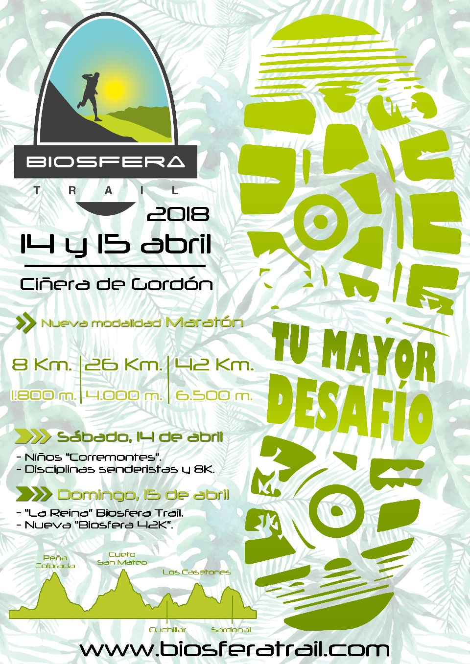 La carrera “ Biosfera 8K 2018” es una prueba organizada por la empresa Interval No Limits. Se celebrará el día 15 de Abril de 2018, con salida y meta en la localidad de Ciñera de Gordón encuadrada en la montaña central leonesa.