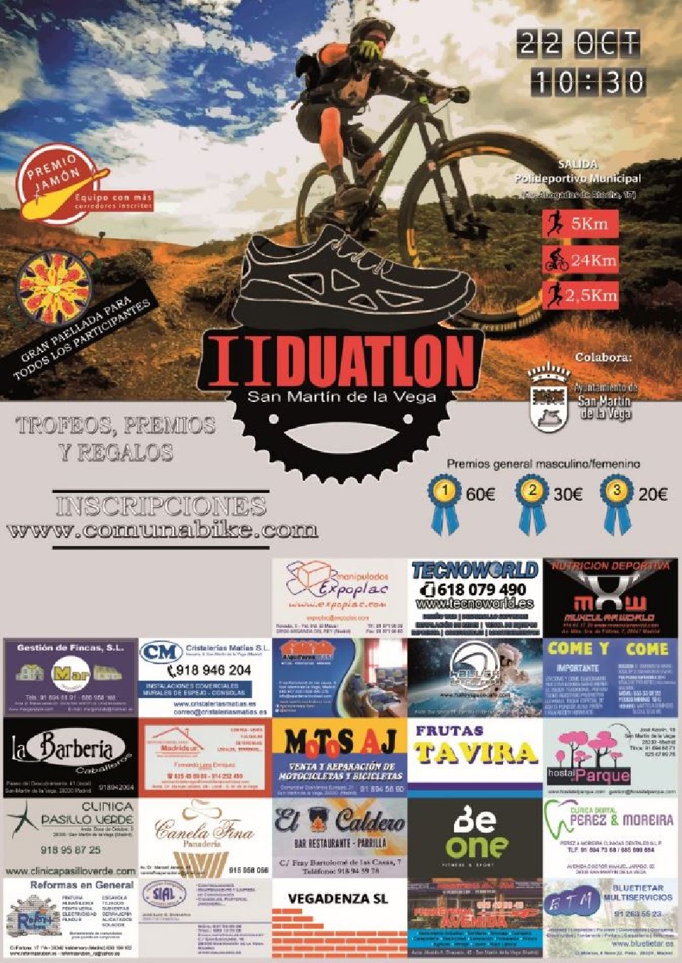 Por el sólo hecho de inscribirse, el participante declara que: “Me encuentro en estado de salud óptimo para participar en el “II DUATLÓN DE SAN MARTIN DE LA VEGA”. Además, eximo de toda responsabilidad a la organización, u otras instituciones participantes ante cualquier accidente o lesión que pudiera sufrir antes, durante y/o después del evento deportivo, renunciando desde ya a cualquier acción legal en contra de cualquiera de dichas entidades.