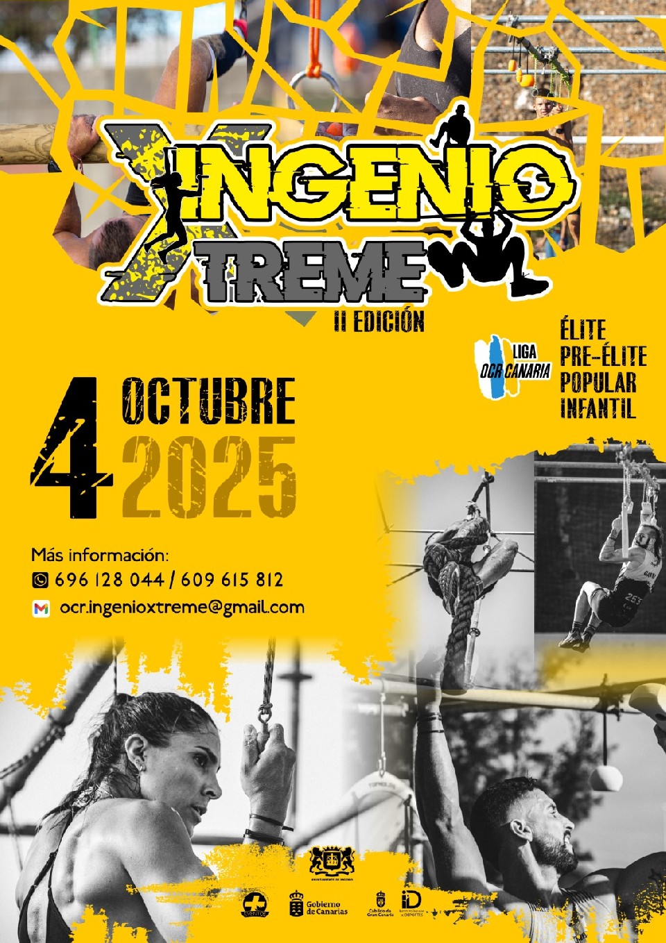 - 2.2- La II edición de la Ingenio Xtreme se celebrará el sábado, 4 de octubre de 2025, a partir de las 9:00 horas. El circuito discurrirá en Carrizal, desarrollándose el mismo por el Barranco de Los Aromeros, Parque de La Esperanza y Playa del Burrero. 2.3- El horario de salida de los/as participantes se hará por tandas, dando opción a elegirlas en el momento de la inscripción.