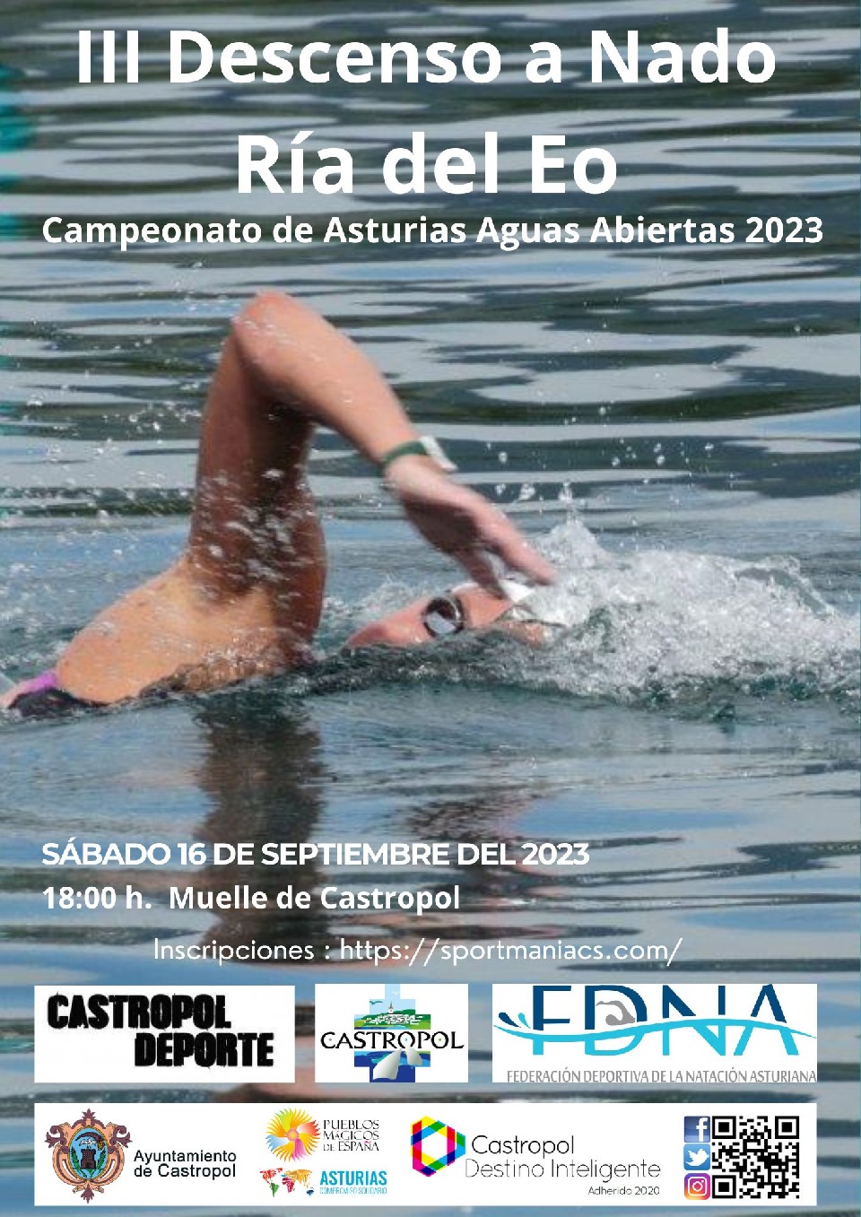 La Federación Deporvia de la Natación Asturiana (FDNA), en colaboracion con el Ayuntamiento de Castropol, organiza el Campeonato de Asturias de Aguas Abiertas, formado por dos pruebas, una de 2500m y otra de 1500m, puntuables para el Circuito FDNA de Aguas Abiertas 2023, a cuyas normativas está sujeta de forma específica en todos los aspectos no dispuestos en la presente normativa.