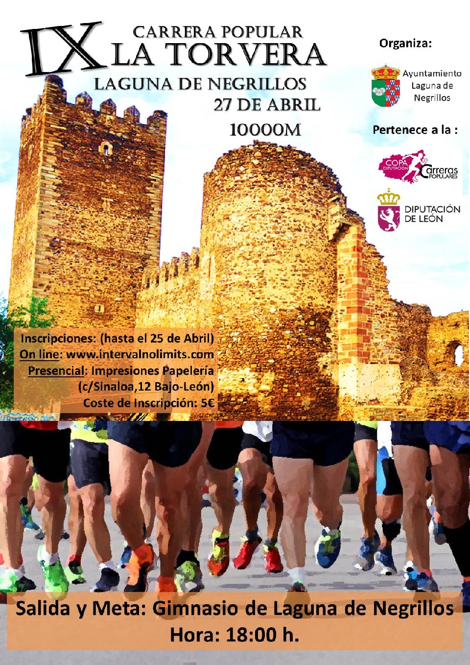 - Evento: Carrera Popular “LA TORVERA 2019” Día: 27 de abril 2019. Hora: 18:30h Lugar: Salida y meta en el Gimnasio de Laguna de Negrillos (León).