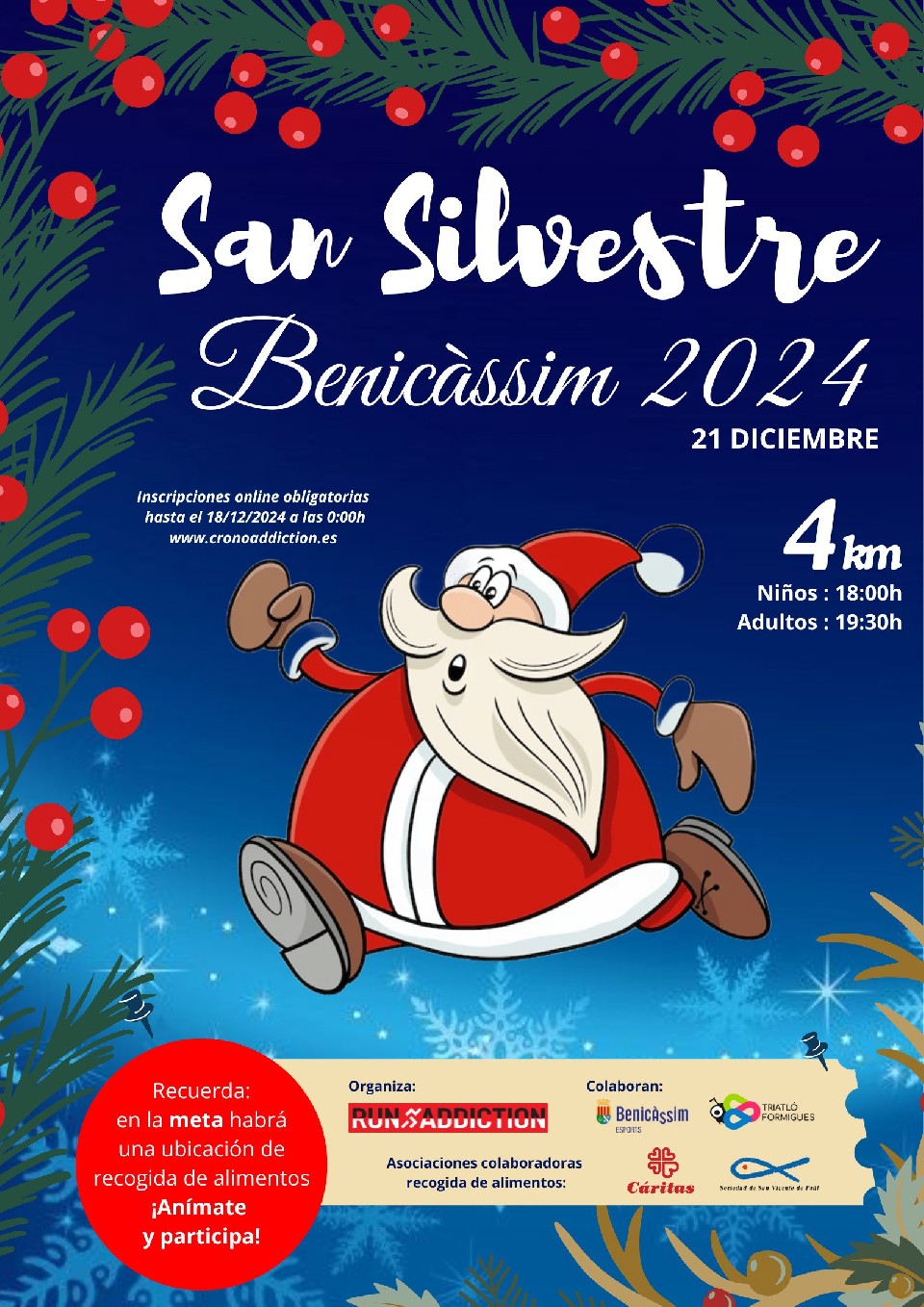El Excelentísimo Ayuntamiento de Benicasim, organiza con la colaboración de Run Addiction, la SAN SILVESTRE, prueba atlética en la que podrán participar todas las personas que lo deseen, debidamente inscritas mayores de 12 años.