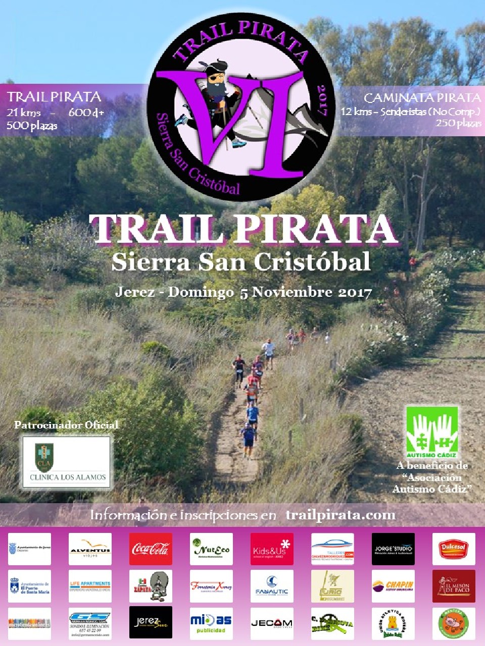 El CLUB TRAIL PIRATA JEREZ organiza el VI TRAIL PIRATA SIERRA SAN CRISTÓBAL, que se celebrará el 5 de noviembre de 2017. La prueba constará de dos modalidades: una Trail o carrera a pie y una senderista no competitiva, con los siguientes datos: