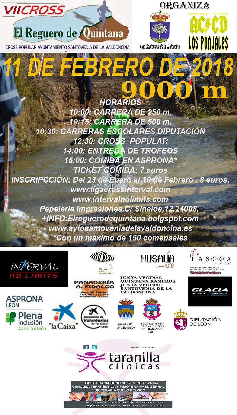- Evento: VII Cross El Reguero de Quintana. Fecha: 11 de Febrero de 2018. Hora: 12:30 Lugar: Campo de Fútbol de Quintana de Raneros.