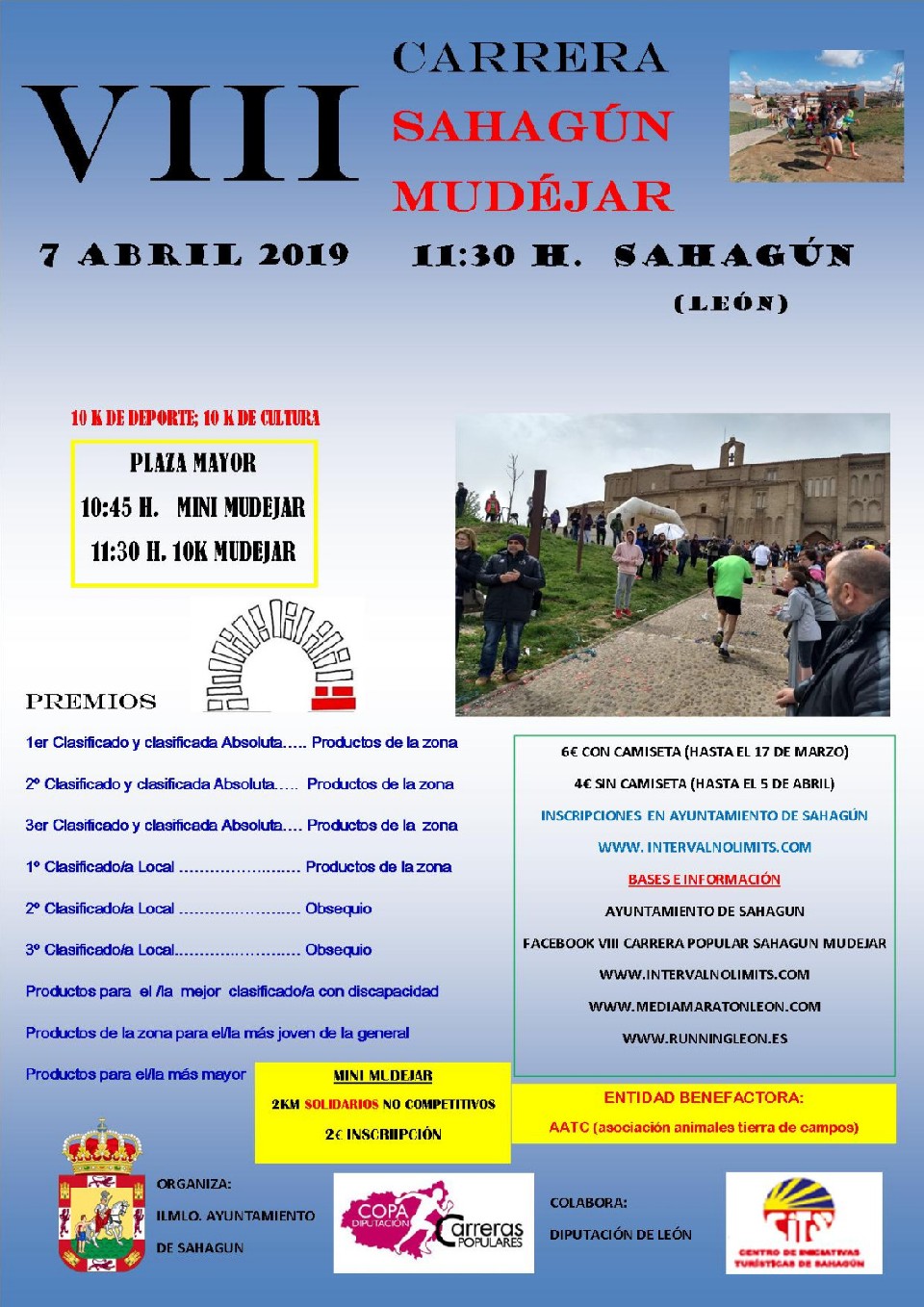 Las inscripciones se realizarán, desde el día 8 marzo de 2019, a través de la página web www.intervalnolimits.com, y presencialmente en el Ayuntamiento de Sahagún pudiendo ver la información de la carrera en esta página web, en www.aytosahagun.es, en www.mediamaratonleon.com, www.runningleon.es y en Facebook: VII Carrera Popular Sahagún Mudéjar.