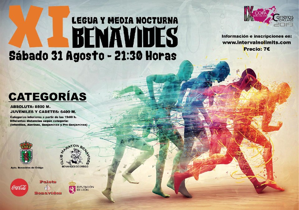 - Evento: XI LEGUA Y MEDIA NOCTURNA DE BENAVIDES Día: Sábado 31 de agosto de 2019 Hora: 21:30 Lugar: Benavides de Órbigo.