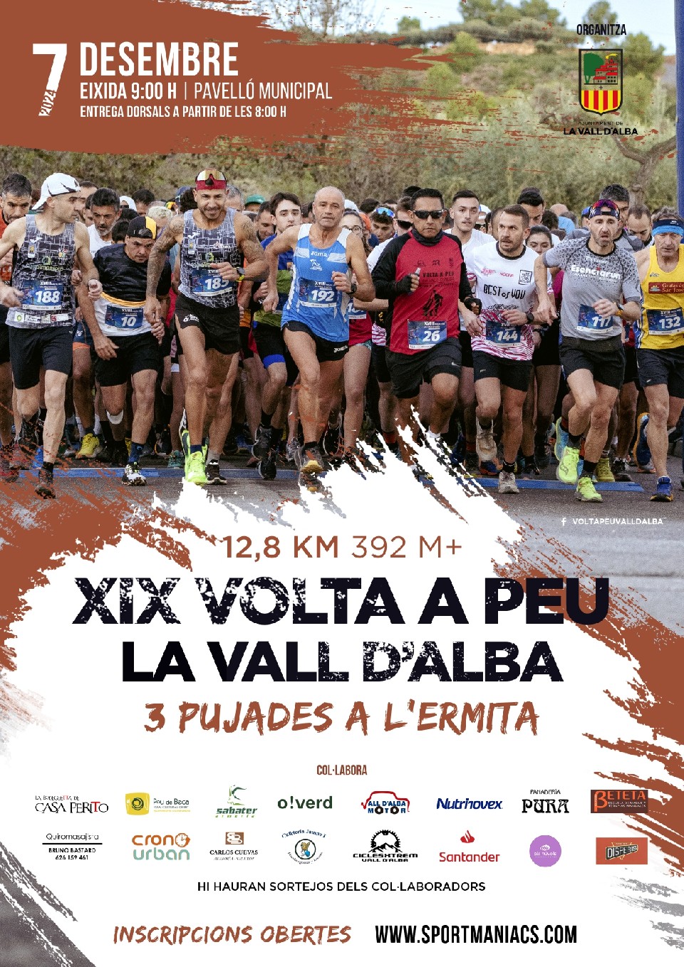 L’ esdeveniment esportiu VOLTA A PEU VALL D’ALBA, està organitzada per l ’AJUNTAMENT DE LA VALL D’ ALBA amb la col·laboració del GRUP SENDERISTA L’ ALBEA i CICLESXTREM VALL D’ALBA. Es tracta d’una prova esportiva, que a banda de promocionar la pràctica esportiva, vol donar a conèixer l’ entorn natural de la localitat i fomentar l’estima pel medi ambient. La prova es realitzarà el proper dia 7 de desembre amb sortida i arribada al Pavelló Municipal.