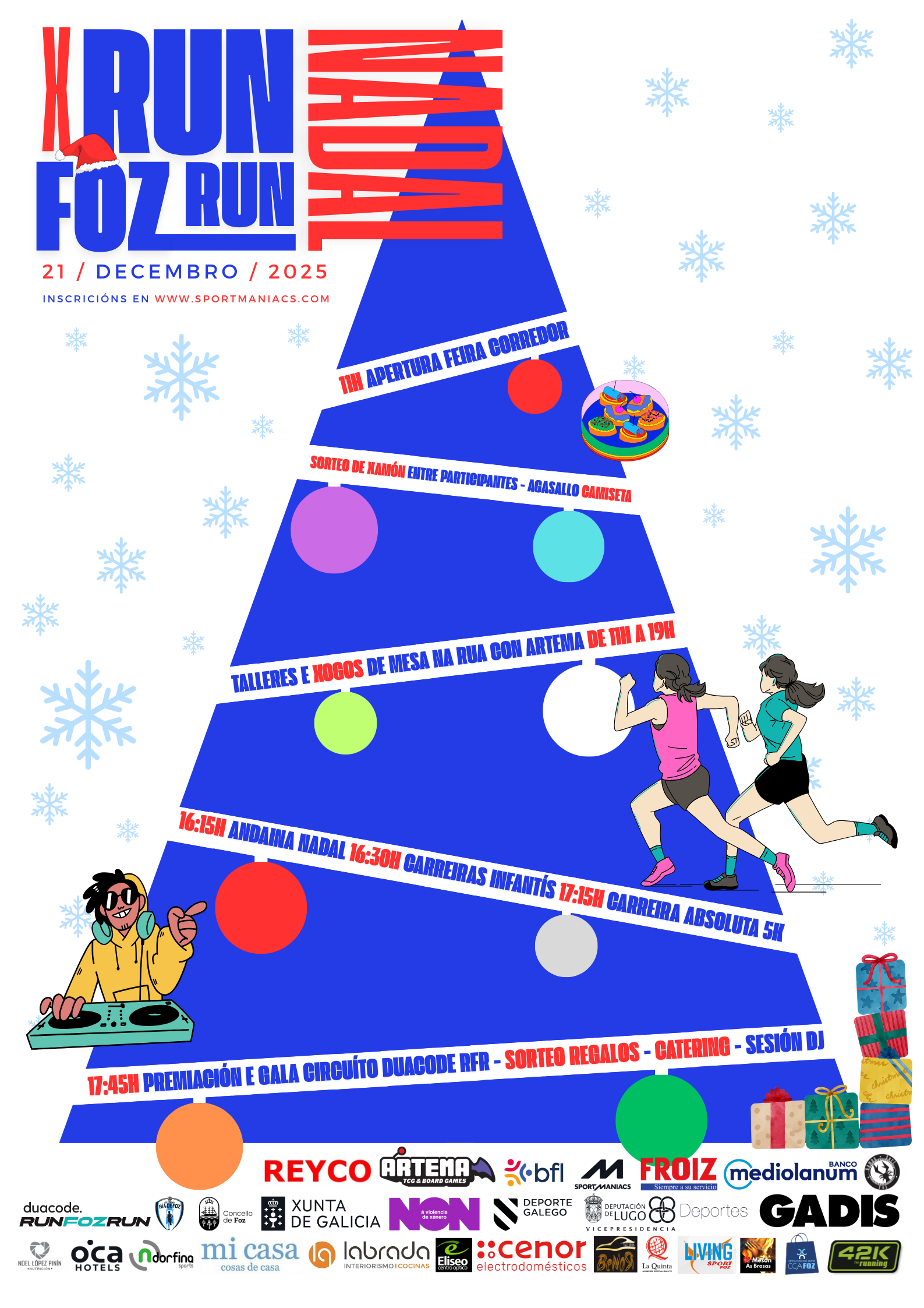 ESE MISMO DÍA SE CELEBRARÁ LA CEREMONIA DE PREMIACIÓN DEL CIRCUÍTO DE CARRERAS 2025 AL FINALIZAR EL EVENTO X RUN FOZ RUN NADAL 2025. PARA OPTAR A LOS PREMIOS SERÁ NECESARIO PRESENTARSE A LA GALA/CEREMONIA DE PREMIACIÓN FINAL.