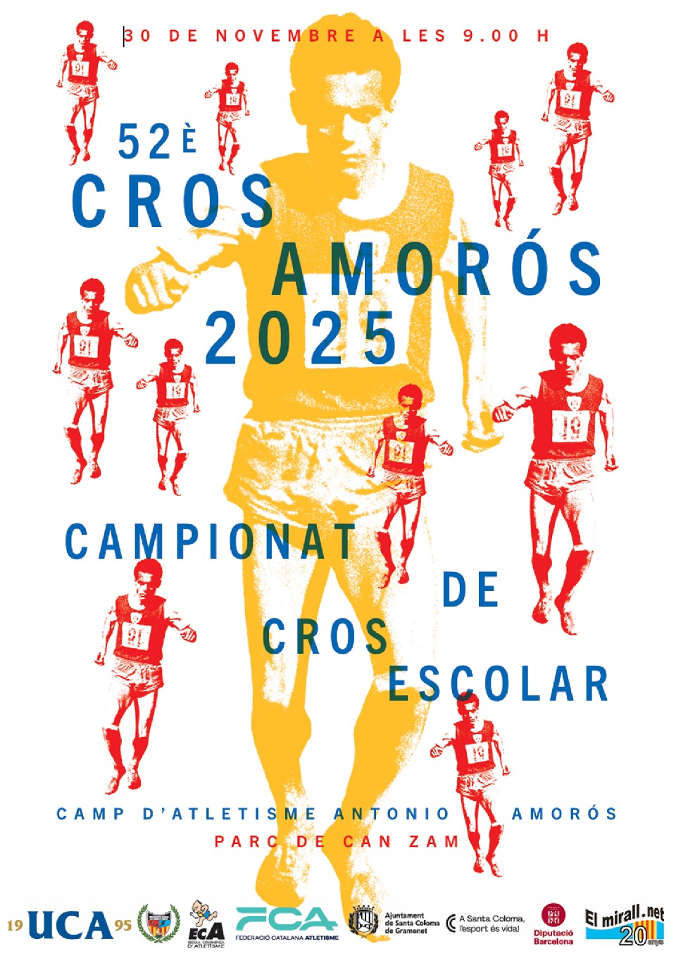 1. Organitzadors i descripció de l'activitat ● La Unió Colomenca d’Atletisme, conjuntament amb el Departament d’Esports de l’Ajuntament de Santa Coloma de Gramenet, organitza el proper 30 de Novembre de 2025, el LII Cros Antonio Amorós, LII Campionat Escolar de Cros de Santa Coloma de Gramenet i XLII Gran Premi Internacional UCA. El seu objectiu és el de fomentar i promocionar l'esport, concretament l'atletisme, a la ciutat. ● Durant la matinal es realitzaran 13 curses que donaran cabuda a totes les categories, tant d'escolars, com de federats i corredors populars de tots dos sexes. ● La participació dels escolars matriculats a Santa Coloma de Gramenet serà gratuïta, amb premiacions individuals i col·lectives. Contacte organització: respcursesuca@gmail.com Entitats organitzadores: Unió Colomenca d'Atletisme, Departament d'Esports de l'Ajuntament de Santa Coloma de Gramenet. Entitats col·laboradores: Ajuntament de Santa Coloma de Gramenet, Federació Catalana d’Atletisme, Secretaria General de l’Esport de la Generalitat de Catalunya, Diputació de Barcelona.