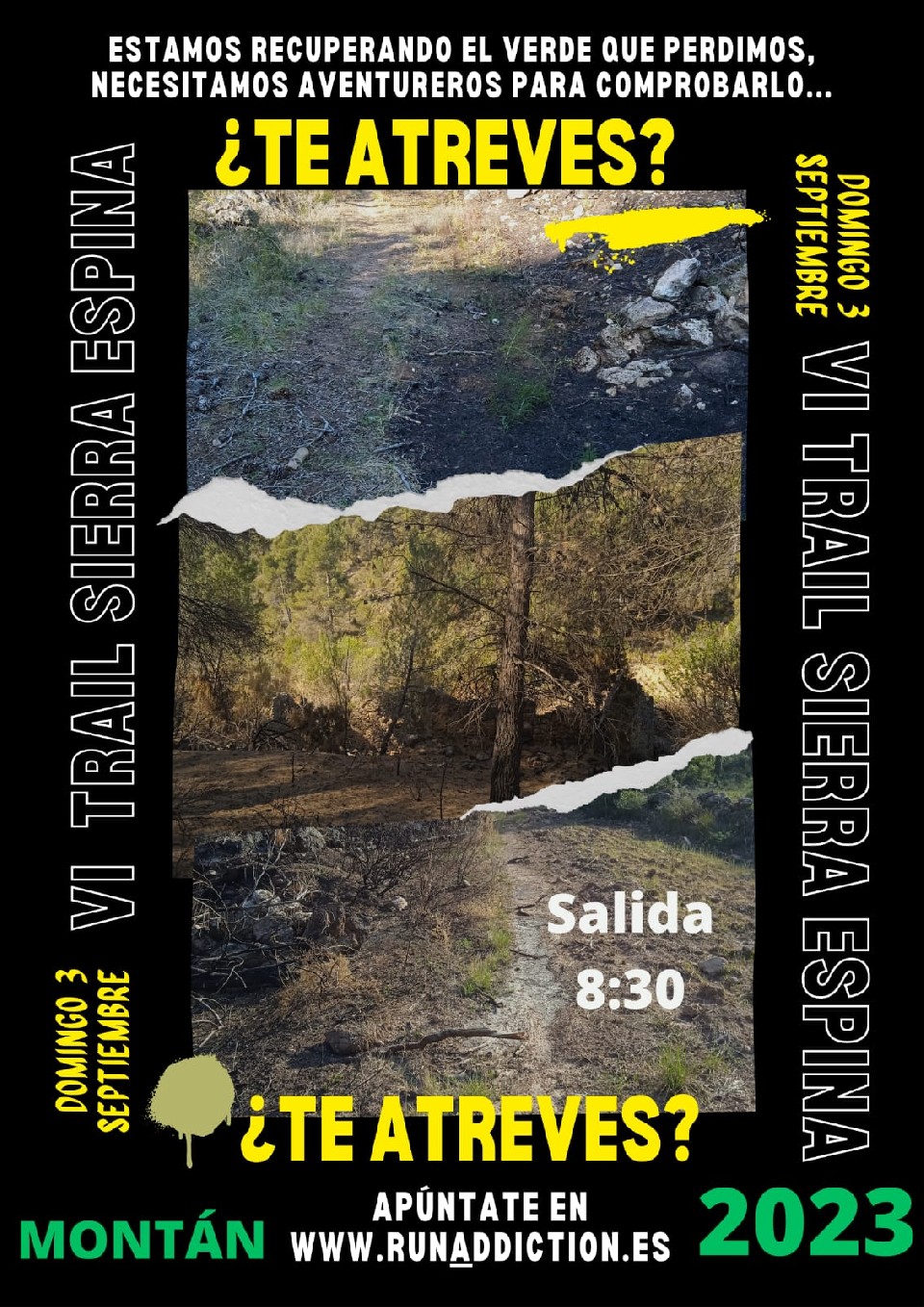 El VI Trail Montán - Sierra Espina es una carrera por montaña que está regulada por el presente Reglamento.la salida a las 8.30 desde zona ocio y deporte " la piscina", recogida de dorsales a partir de las 7:00 horas, hasta 15m antes de la salida.