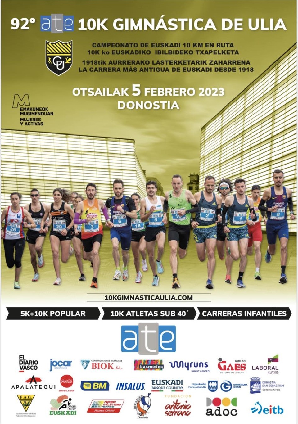 REGLAMENTO 1. ORGANIZADOR La 10K Gimnastica de Ulia está organizada por la Sociedad Gimnastica de Ulia. Está inscrita en el calendario nacional de la Real Federación Española de Atletismo 2. FECHA, HORA Y DISTANCIAS El Domingo 5 de febrero de 2023 se celebra la 92ª Edición con salida y meta en el Paseo de la Zurriola de San Sebastián. Hora de Salida Distancia 3.120M > 09:30 horas Hora de Salida Distancia 1.560M > 09:50 horas Hora de Salida Distancia 5km > 10:00 horas Hora de Salida Distancia 10km Populares > 10:45 horas Hora de Salida Distancia 10km Sub40’ > 12:00 horas 3. REQUISITOS DE PARTICIPACIÓN La carrera está abierta a atletas de cualquier nacionalidad, federados y no federados y que tengan 18 años cumplidos el mismo día de la prueba. Los participantes menores de edad, podrán participar en la carrera de 1.560metros y en la carrera de 1.560metros con autorización paterna adjunta en el formulario de inscripción. ESTÁ PROHIBIDA LA PARTICIPACIÓN CON ROLLERS, PATINES, SILLAS DE RUEDAS, NORDIC WALKING, ACOMPAÑAMIENTO CON MASCOTAS Y OTRAS DISCIPLINAS DISTINTAS AL ATLETISMO. La Organización recomienda a todos los participantes que se sometan a un Reconocimiento Médico previo a la prueba, aceptando todo participante el riesgo derivado de la actividad deportiva. Igualmente, el atleta declara estar en condiciones físicas óptimas para realizar esta prueba y lo hace bajo su responsabilidad. 4. INSCRIPCIÓN La inscripción a la carrera es personal y supone la aceptación del presente reglamento. Todos los participantes aceptan cada uno de los artículos de este reglamento y se comprometen honestamente a no anticiparse al momento de la salida y a cubrir la distancia completa antes de cruzar la línea de meta. Todas las inscripciones se realizan online en la web oficial del evento www.10kgimnasticadeulia.com Los precios de la inscripción online son: CARRERA 5K > 10 € CARRERA 10K > 15 € CARRERA MENORES DE EDAD > 3€ EL PLAZO PARA REALIZAR LAS INSCRIPCIONES ONLINE FINALIZA EL 29 DE ENERO. Una vez finalizado el plazo de la inscripción online y en el caso de que existan plazas libres, sólo se podrán realizar inscripciones presenciales en Deportes Apalategui San Sebastián el 3 y 4 de febrero de 10:00 a 13:30 y de 16:00 a 20:00 con un precio de 15€ la carrera 5K y 20€ la Carrera de 10k y 5€ las carreras de niños. NO SE REALIZAN INSCRIPCIONES EL DIA DE LA CARRERA ES MUY IMPORTANTE QUE LOS PARTICIPANTES COMPRUEBEN QUE LOS DATOS DE INSCRIPCIÓN SON CORRECTOS PARA QUE PUEDAN REALIZAR LOS CAMBIOS A TIEMPO. EL PLAZO MÁXIMO PARA MODIFICAR LA INSCRIPCIÓN ES EL 29 DE ENERO. Se pueden modificar los datos, traspasar la inscripción a otra persona y también realizar el cambio de distancia una vez realizada la inscripción. Todas las solicitudes de modificación se realizan directamente en la web con el número de identificación del justificante de inscripción. Una vez formalizada la inscripción no se hará reembolso del importe de inscripción de la carrera por ningún motivo, incluyendo la cancelación de la prueba causada por un caso de fuerza mayor, considerando éstas como aquellas en que las autoridades pertinentes obliguen a suspender el evento. 5. RECOGIDA DE DORSALES Al realizar la inscripción online se debe seleccionar el lugar de recogida del dorsal en una de las tiendas asociadas al evento los días 3 y 4 de febrero en el horario comercial de la propia tienda. Para recogerlo será necesario presentar el DNI. EN CASO DE QUE EL PARTICIPANTE NO PUEDA RECOGER PERSONALMENTE SU DORSAL, PODRÁ RECOGERLO OTRA PERSONA EN SU LUGAR PRESENTANDO EL DNI/ PASAPORTE O FOTOCOPIA DE DNI/PASAPORTE DEL PARTICIPANTE. TIENDAS ASOCIADAS DONOSTIA SAN SEBASTIÁN Deportes Apalategui. ZUMARRAGA Deportes Apalategui. IRUN LeireSport. TOLOSA Shanti Kirolak. EIBAR Deportes Askasibar Intersport. BILBAO Intersport San Mamés. VITORIA GAZTEIZ Running Fiz. PAMPLONA Zariquiegui. NO SE ENTREGAN DORSALES EL DÍA DE LA CARRERA. 6. CRONOMETRAJE Y TIEMPO LÍMITE El cronometraje se realizará a través del sistema de dorsal-chip que recibirán todos los participantes. Habrá un pequeño dispositivo colocado en la parte posterior del dorsal que no debe separarse del mismo en ningún momento. No es necesario devolver el dorsal-chip una vez finalizada la carrera. Si no se lleva el dorsal en el pecho no se garantiza el cronometraje de la prueba. ES OBLIGATORIO COLOCAR EL DORSAL CHIP VISIBLEMENTE Y SIN DOBLAR EN EL PECHO. NO ES POSIBLE PARTICIPAR EN LA CARRERA NI ACCEDER A LOS SERVICIOS DE LA MISMA SI NO SE LLEVA EL DORSAL VISIBLE. Se establece un tiempo máximo de 45 min. para completar el recorrido de 5K y 1h 15min para la carrera 10k. Después de este tiempo, los participantes que no hayan finalizado el recorrido deberán abandonar el mismo. 7. SERVICIOS AL CORREDOR CAMISETA TÉCNICA. Todos los participantes en la carrera recibirán una camiseta técnica de running conmemorativa de la prueba. GYMSAC XXL. Para introducir sus pertenencias en el guardarropa recibirán un Gymsac XL. DEGUSTACIÓN EN META. Al finalizar la carrera los atletas participantes dispondrán de una bolsa de avituallamiento individual con líquidos y sólidos proporcionada por los patrocinadores. GUARDARROPA. Habrá servicio de guardarropa gratuito en las canchas de Baloncesto de Sagúes desde las 9:15 de la mañana hasta las 13:30 horas. DUCHAS. Los participantes dispondrán de servicio de vestuario con duchas en el Polideportivo de Manteo para su utilización una vez terminada la carrera. DIPLOMA DE PARTICIPACIÓN. Todos aquellos que lo deseen podrán descargarse el diploma acreditativo de su participación en la web del evento de forma gratuita. 8. TROFEOS Recibirán trofeos los tres primeros clasificados con Tiempo Oficial de ambos sexos en categoría absoluta, sub-23 en todas las distancias. 9. DESCALIFICACIONES SERÁ MOTIVO DE DESCALIFICACIÓN: •Proporcionar datos falsos en la inscripción (edad, residencia, etc.). •No re