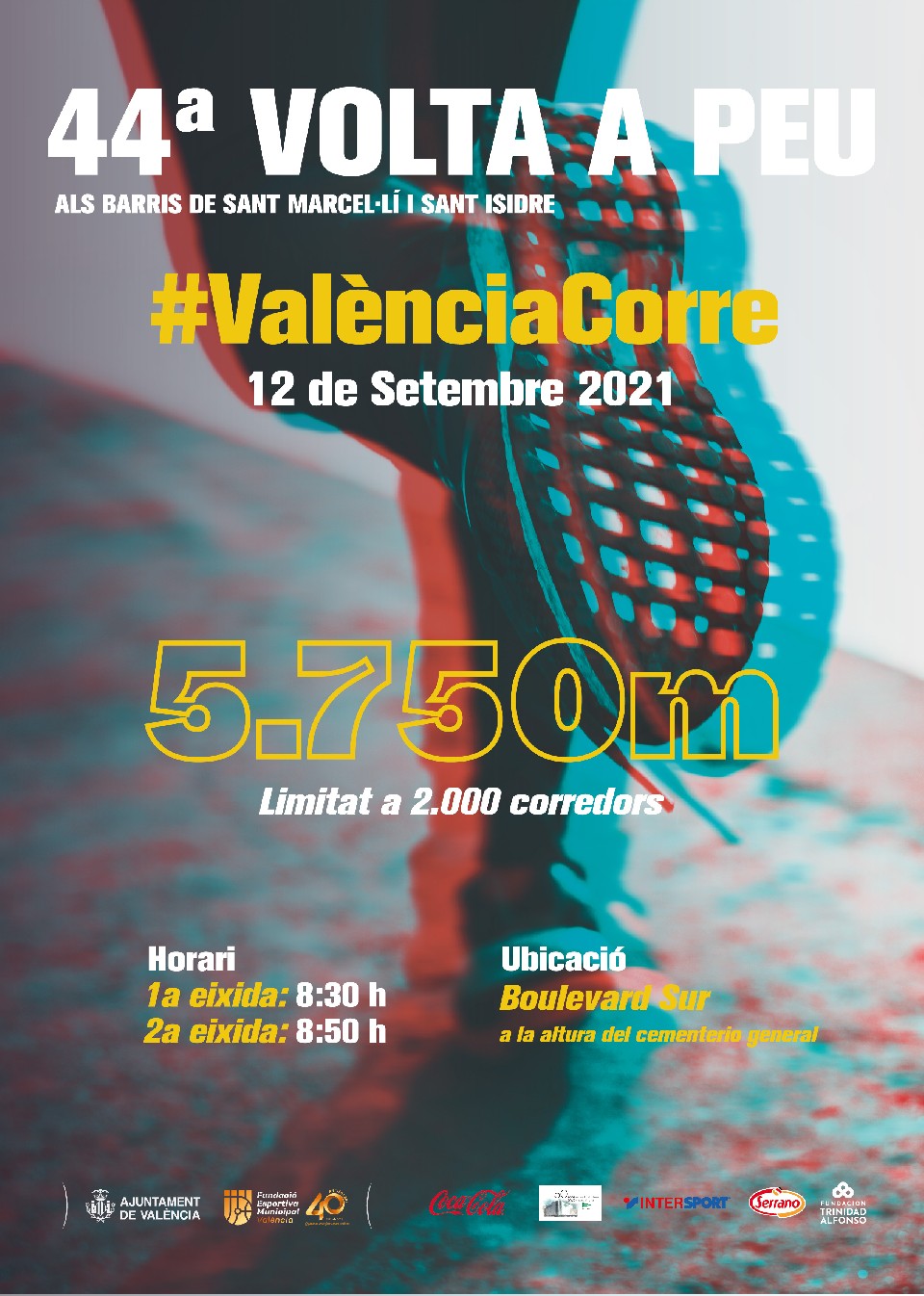 El Organismo Autónomo Fundación Deportiva Municipal del Ayuntamiento de València en colaboración con las asociaciones de vecinos de los barrios de San Marcelino y San Isidro, organiza la 44ª Volta a Peu als Barris de Sant Marcel·lí i Sant Isidre y cuenta con la colaboración de Fundación Trinidad Alfonso, Intersport, Serrano, Coca-Cola y El Corte Inglés.